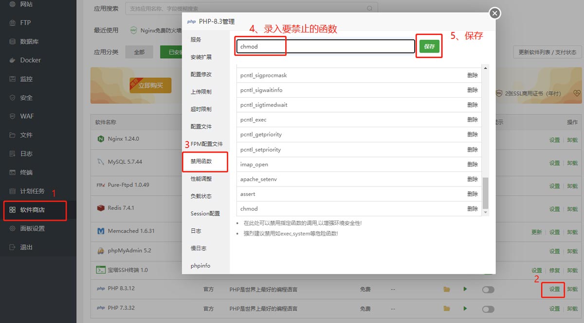 依次打開(kāi)【軟件商店】-【已安裝】,找到需要配置的PHP版本,如下圖所示
