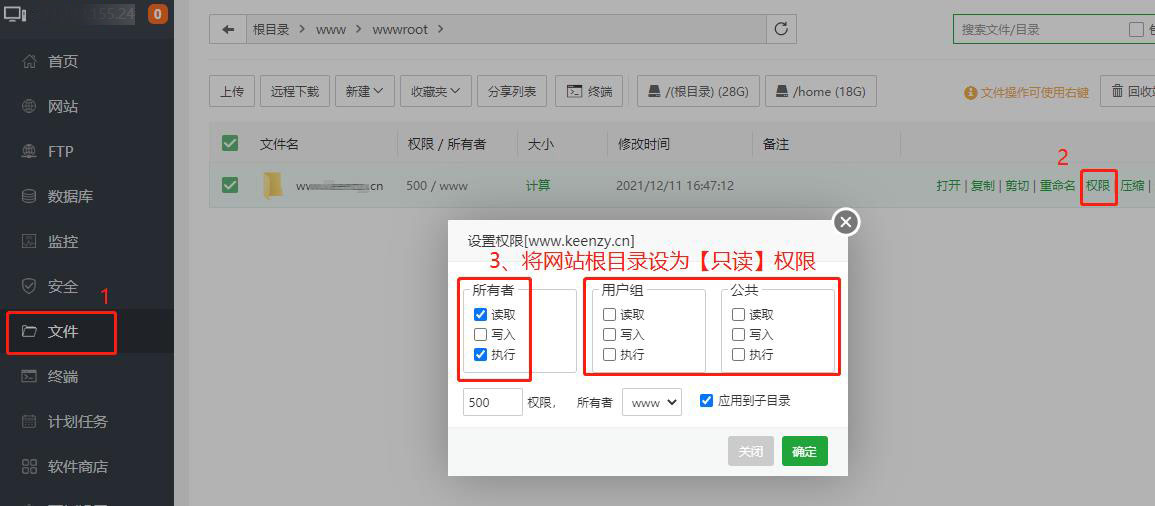 1、將網(wǎng)站根目錄設(shè)置為只讀權(quán)限