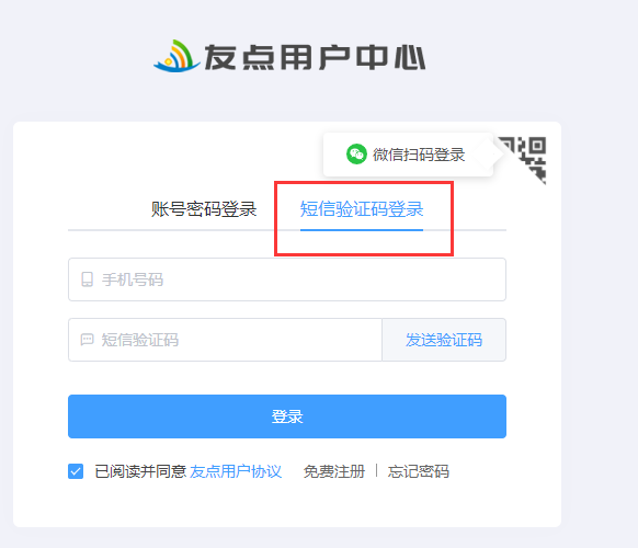 友點(diǎn)用戶中心已正式上線,第1次登錄請(qǐng)使用用預(yù)留的手機(jī)號(hào)碼,選擇
