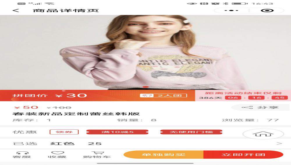 拼團(tuán):基于微信社交的拼團(tuán),開團(tuán)后邀請(qǐng)好友成團(tuán)。