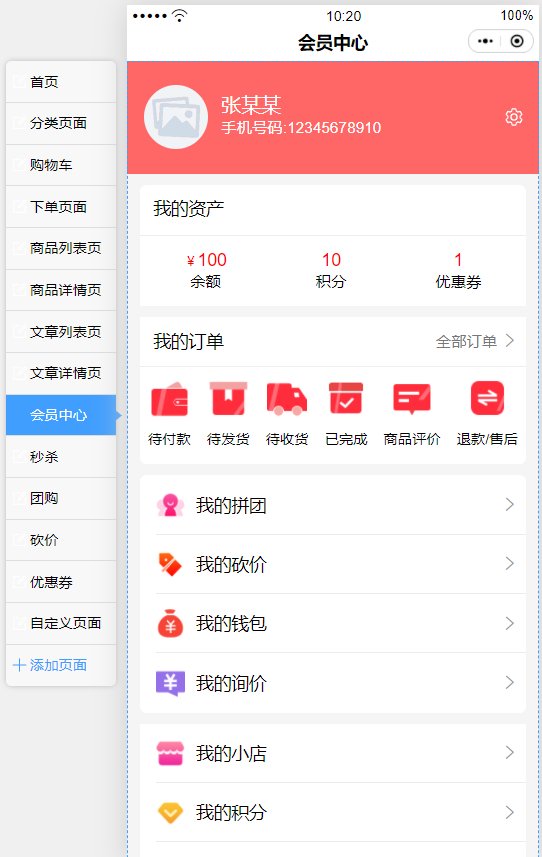 不僅首頁(yè),列表頁(yè),詳情頁(yè),會(huì)員中心等頁(yè)面都可以進(jìn)行DIY裝修。