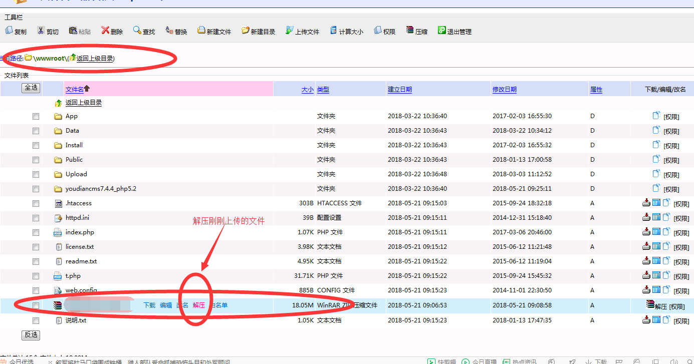 1、 下載我們系統(tǒng)的程序,打包成ZIP文件(不要單獨上傳解壓后的文件)下載地址:點擊下載YouDianCMS系統(tǒng)