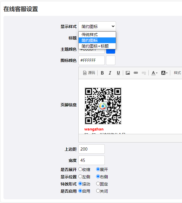 1)傳統(tǒng)樣式頁腳信息會在在線客服的框里顯示對應(yīng)的信息。