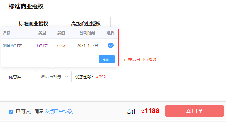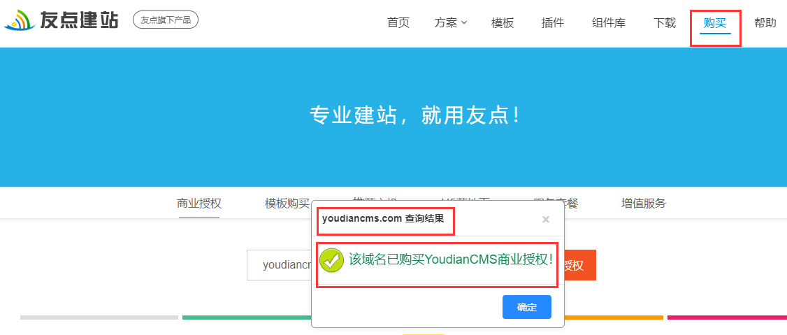 授權(quán)購(gòu)買成功后,可在友點(diǎn)官網(wǎng)——》購(gòu)買——》商業(yè)授權(quán)里,查詢是否授權(quán)成功。