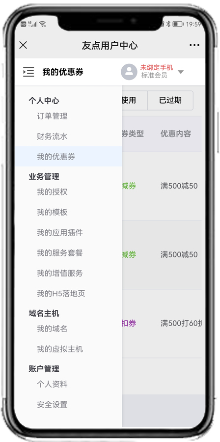 手機(jī)端也能夠方便的登錄用戶中心,進(jìn)行購(gòu)買、管理和操作!